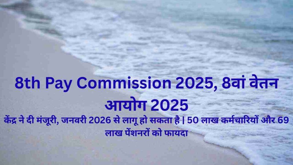 8th Pay Commission 2025:केंद्र सरकार ने 8वें वेतन आयोग को मंजूरी दे दी है। इससे 50 लाख केंद्रीय कर्मचारियों और 69 लाख पेंशनर्स को बड़ा फायदा मिलेगा। जानिए—सैलरी कितनी बढ़ सकती है और आयोग की सिफारिशें कब से लागू होंगी।