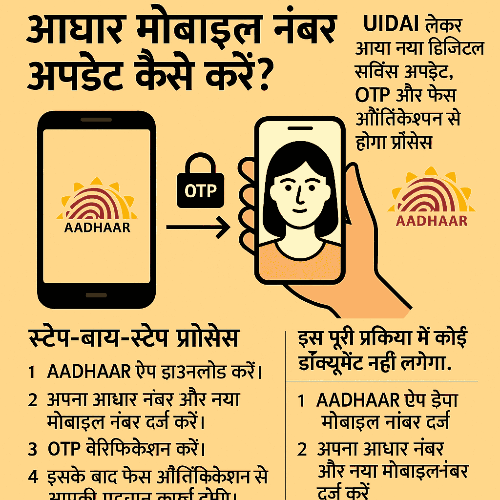 UIDAI के अनुसार, मोबाइल नंबर अपडेट करने की प्रोसेस बेहद आसान रखी गई है।